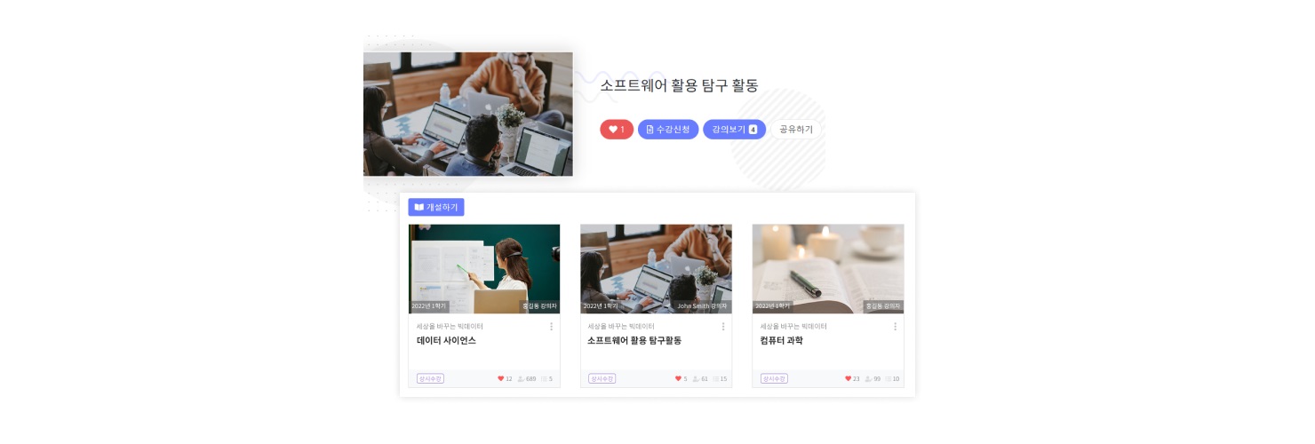 µî·ÏµÈ °Á¸¦ ´Ù¾çÇÑ ¹æ¹ýÀ¸·Î °Ë»öÇØ ¿øÇÏ´Â °Á¸¦ ½±°Ô ã½À´Ï´Ù. Àα⠰ÁÂ, Àüü °ÁÂ, ¿¬µµ, °Ë»ö¾î¸¦ ÅëÇØ °Ë»öÇÒ ¼ö ÀÖ°í, ÃÊ´ë Äڵ带 ÅëÇØ ¹Ù·Î °Á ½Åûµµ ÇÒ ¼ö ÀÖ½À´Ï´Ù.